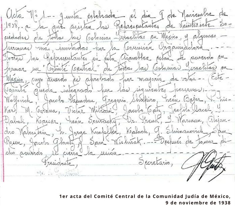 Transcripción de la primera acta del Comité Central de la Comunidad Judía de México, a 79 años de su constitución.
