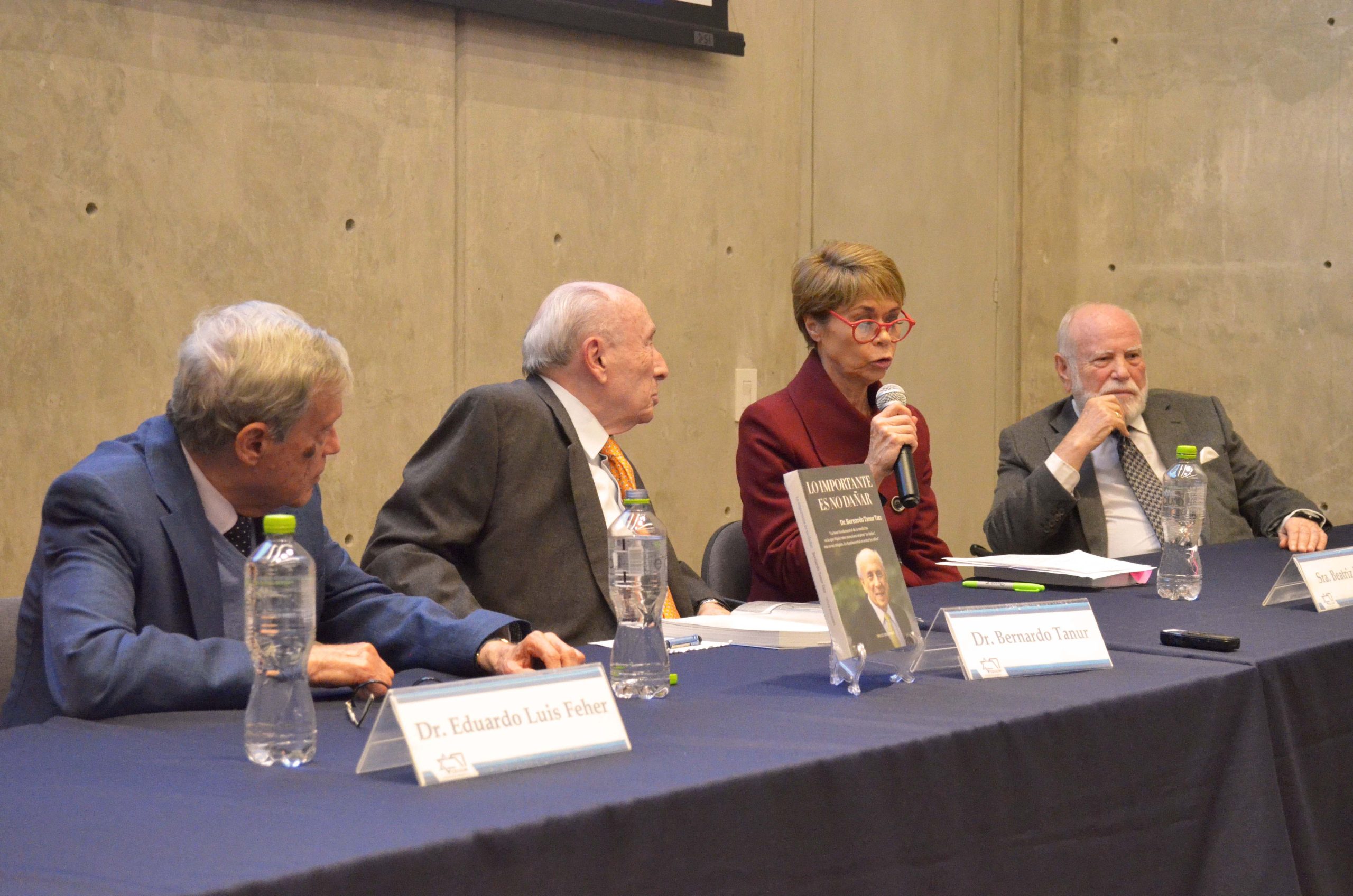A continuación tocó el turno de hablar a la Sra. Beatriz Pagés, que estuvo a cargo de escribir el prólogo del libro. La Directora de la revista Siempre inició su intervención mencionando que el título de la obra le recordó la responsabilidad que todos tenemos de ser tolerantes y respetuosos con los demás. También resaltó que el consultorio del Dr. Tanur era un sitio en el que no había cupo para los insultos, el odio o la mentira y finalmente concluyó su participación mencionando que, a lo largo de su vida, el Dr. Tanur ha sabido curar el cuerpo con su práctica médica y con su amistad alviar el alma. El último en brindar unas palabras a los asistentes fue el Arq. Eduardo Bross, primo del Dr. Bernardo Tanur, quien también contó algunos detalles sobre la historia familiar.