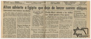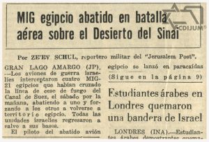 Con ayuda armamentística de la extinta Unión Soviética de Repúblicas Socialistas (URSS), los egipcios continuaron con el hostigamiento a través de su fuerza área. Al respecto, la prensa judía mexicana comentaba en las primeras planas todos los detalles de estos conflictos y escaramuzas que se daban en el frente de guerra.