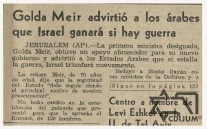 Golda Meir, símbolo de Israel y de las mujeres judías, una vez que había tomado posesión como Primer Ministro de Israel envió una advertencia a los árabes que aun querían continuar con la guerra: “Israel ganará si hay guerra.”