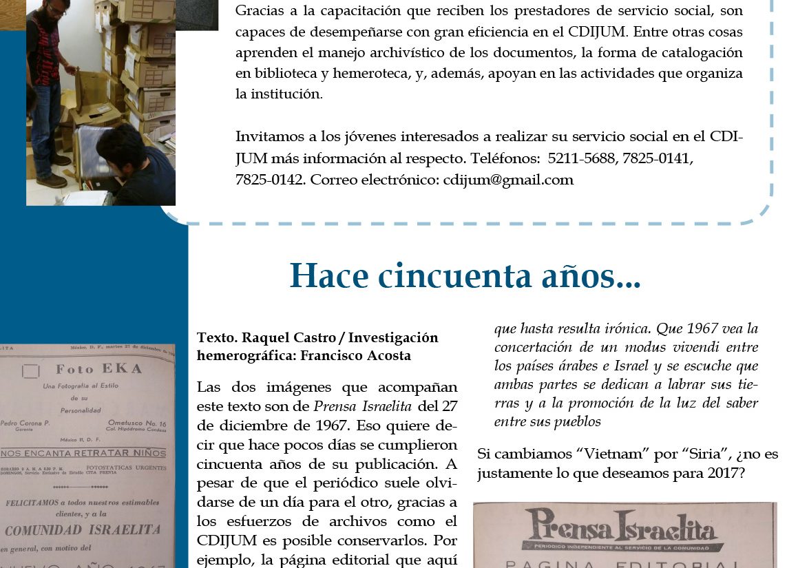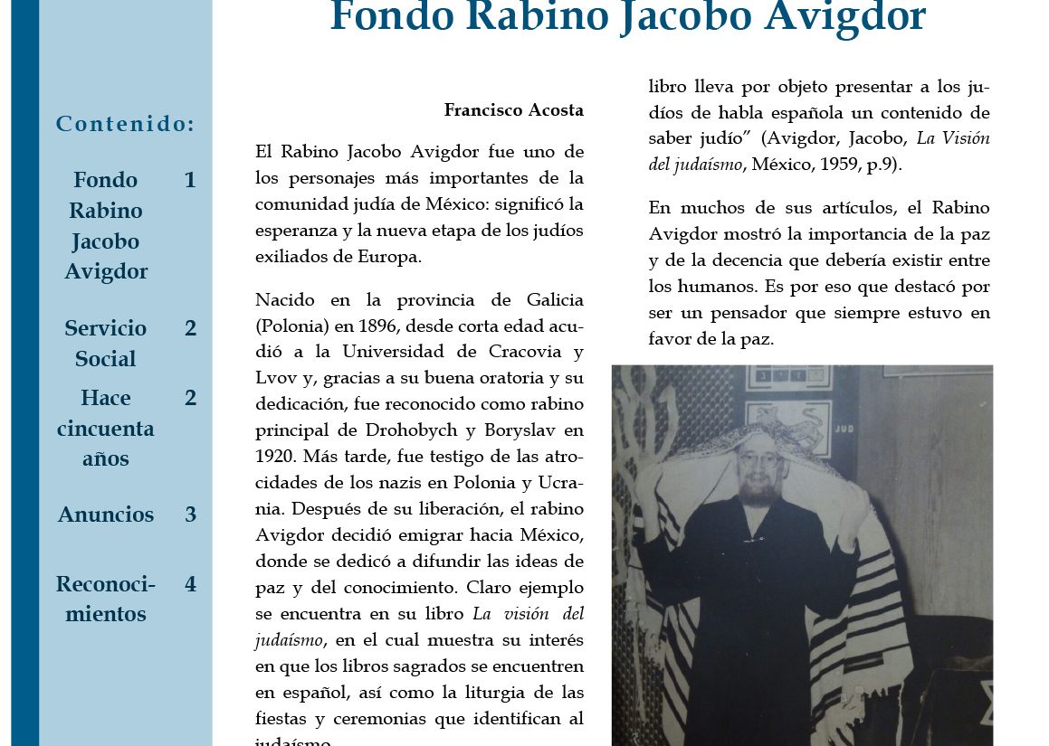 En esta edición exploramos el Fondo Rabino Jacobo Avigdor, así como nuestro programa de servicio social; además celebramos dos imágenes que cumplen cincuenta años de edad.